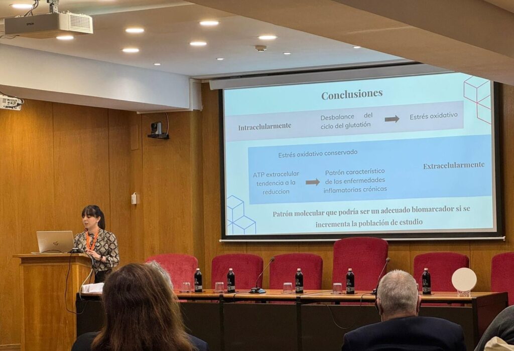 Nerea Menéndez Coto presentó los resultados del estudio piloto desarrollado por el Grupo cROS y el Instituto Internacional de Melatonina de Granada titulado: “Estado redox en pacientes con Sensibilidad Química Múltiple (SQM): un estudio piloto”